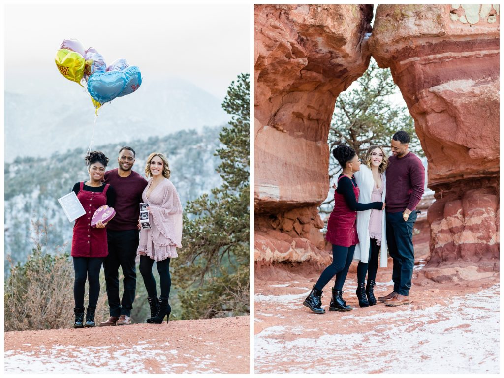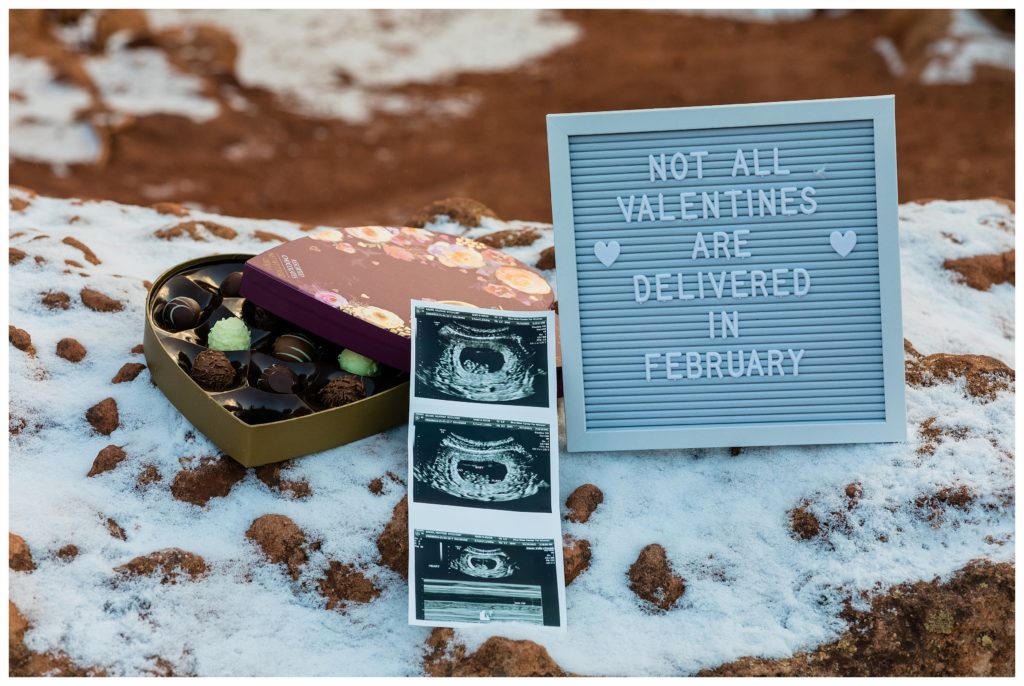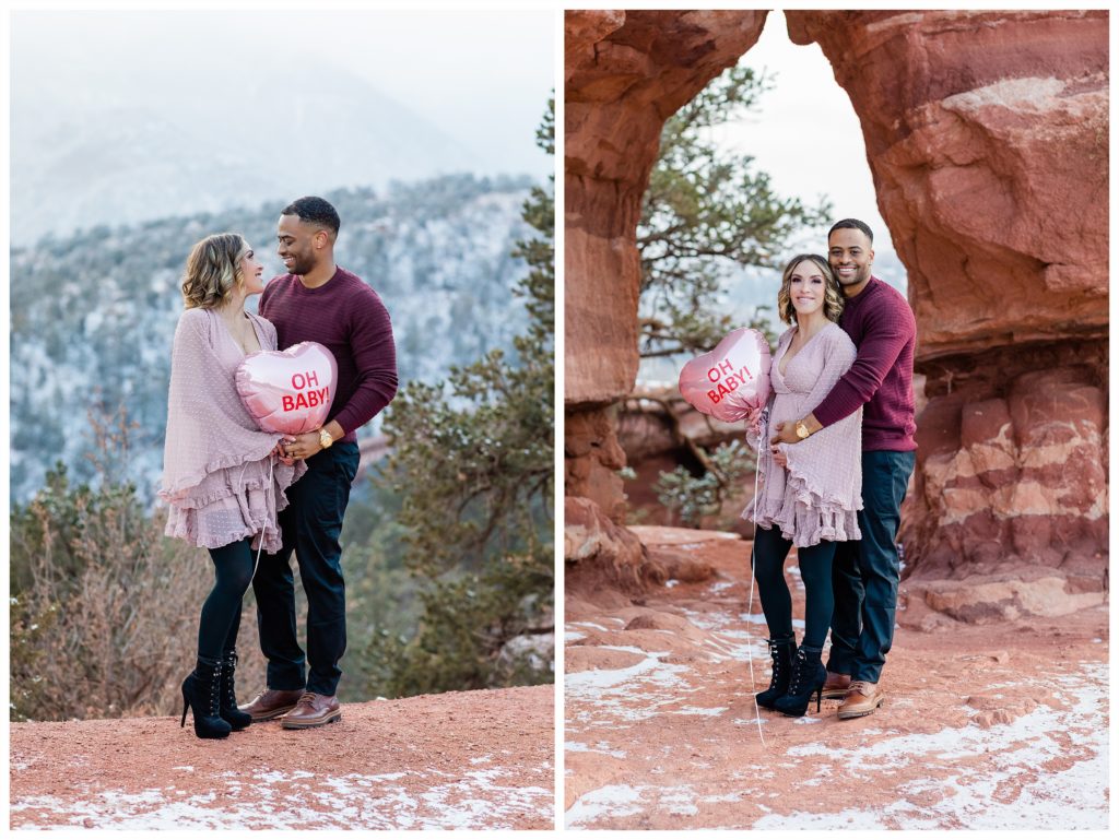On the coldest day I think I’ve ever photographed a session, I got to take these Valentine’s Day themed baby announcement photos for Heather and her family! We chose this spot at Garden of the Gods because it has the cool rock arch area and the Pikes Peak mountain view right next to each other. It turned out perfectly to get a little variety in the 15 minutes we had together, despite the cold and a short walk up the hill to the spot. They were such troopers!